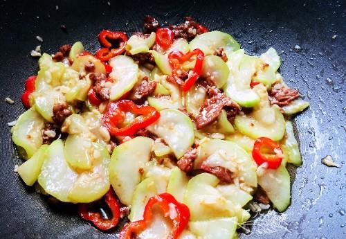 1. 蒲瓜炒肉片:将蒲瓜切片,肉片切丝,用料酒、生抽、淀粉等调料腌制一下。热锅凉油,先下肉片翻炒至变色,再加入蒲瓜片,快速翻炒均匀,最后加入适量的盐、鸡精调味即可。
